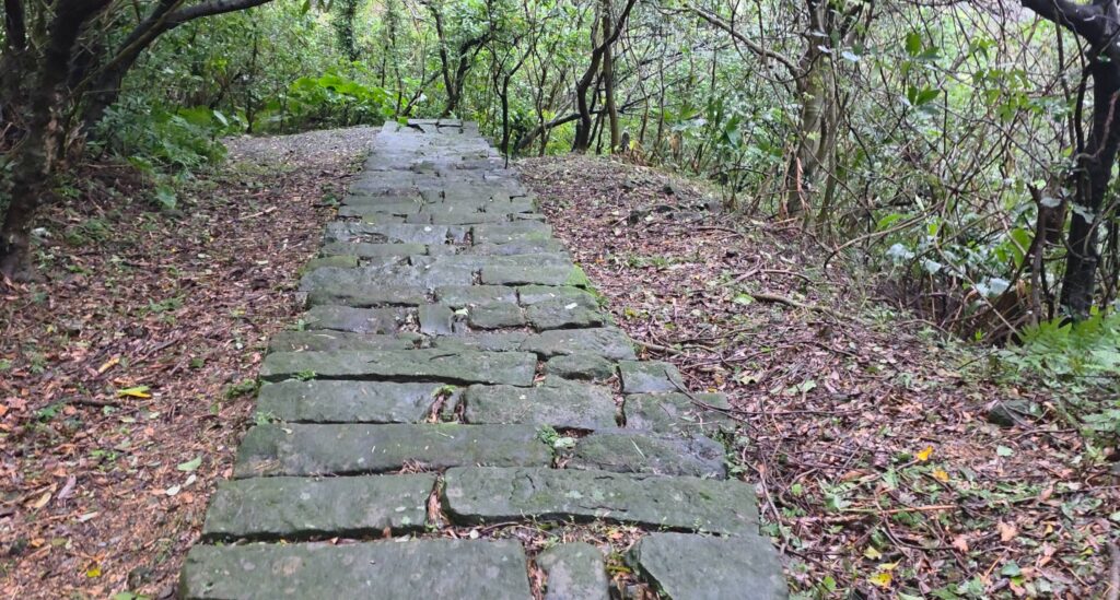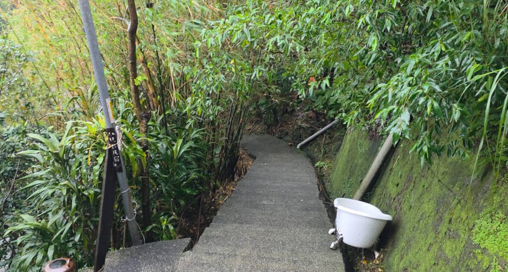 Ich lasse mich treiben, verliere die Richtung, verliere das Gefühl für oben und unten, bis ich abseits der Hauptgassen auf kleine Schilder stoße, die nach unten zeigen. Unscheinbar, fast zufällig, als wären sie nicht für Besucher gedacht, sondern für Menschen, die schon wissen, was sie suchen. Ohne lange nachzudenken folge ich ihnen. Hinab über Stufen, die immer schmaler werden, vorbei an versteckten Tempeln, an privaten Häusern mit offenen Türen, an Katzen auf Fensterbänken, denen der Regen aus dem Fell tropft. Vorbei an Mopeds, die im Nichts geparkt stehen und das Meer dort unten immer fest im Blick – bis auch das verschwindet und nur noch der Wald bleibt.