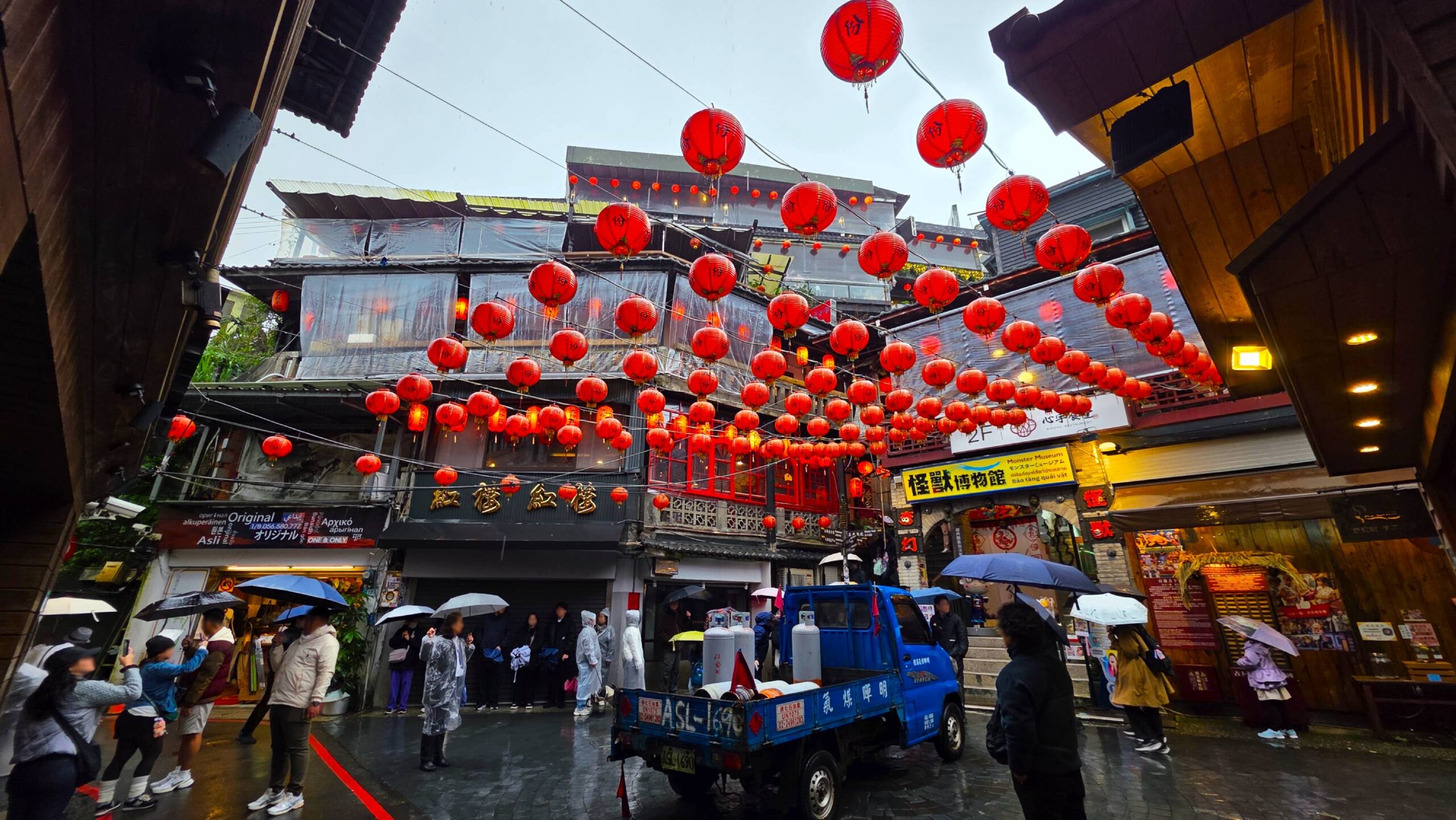 Rote Laternen, schmale Treppen, Teehäuser aus dunklem Holz, Fenster, die vom Atem der Besucher beschlagen sind. Über allem dieses diffuse Licht, das den Regen nicht vertreibt, sondern ihn nur sichtbarer macht. Auf den ersten Blick wirkt alles wie eine Filmkulisse, als hätte man hier einen Ort gebaut, der sich selbst ständig spielt. Doch je länger ich bleibe, desto mehr löst sich diese Illusion auf und gibt den Blick frei auf feuchte Wände, abblätternde Farbe, rostige Geländer und improvisierte Reparaturen. Auf ein Jiufen, das nicht bewahrt, sondern benutzt wird. Das nicht spielt, sondern lebt.