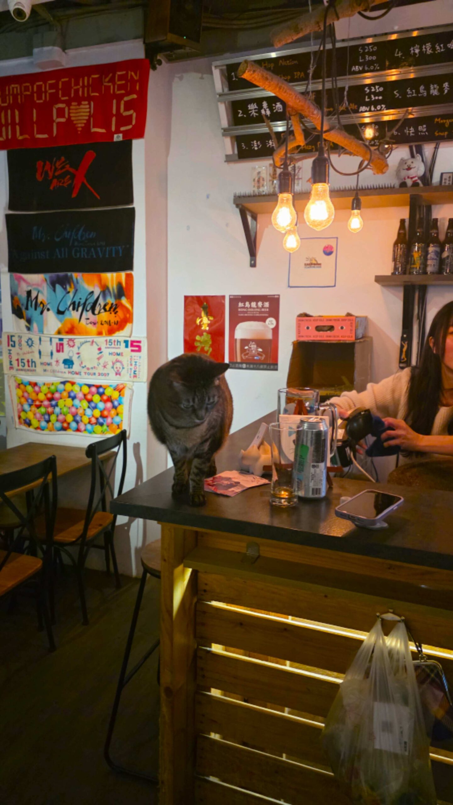 Und BeerCat ist noch viel mehr, es ist nicht irgendein fancy Brand Name. Es heißt so, weil es hier Katzen und Bier gibt. Ja, echte, freilaufende Katzen tappsen auf ihren Samtpfoten durch die Bar, schlawenzeln über die Theke oder kommen einfach mal zum Schnurren vorbei. BeerCat fühlt sich weniger wie eine Bar an und mehr wie ein Zwischenraum. Als hätte jemand ein japanisches Izakaya aus Tokyo genommen, es einmal durch den Regen Taipeis getragen, es auf ein Vielfaches vergrößert und dann vorsichtig zwischen die Häuser gesetzt. Die Wände sind voll mit handgeschriebenen Tafeln, Postern von Bands, die nur ein paar Menschen kennen, und Flaschen, deren Etiketten Geschichten versprechen, die man nicht nachschlagen will. Es gibt hier kein Konzept, das man erklären könnte, nur eine Atmosphäre, die man spürt, sobald man eintritt. Die Bierkarte ist eine kleine Reise für sich. Taiwanesische Craft-Biere, die nach tropischer Hitze, Zitrus und malzigem Sommer schmecken, stehen neben importierten japanischen Sorten, die so sauber und präzise wirken, als hätte jemand Geschmack in Geometrie gegossen. Jedes Bier fühlt sich an wie ein anderer Zustand. Mal leicht und verspielt, mal dunkel und schwer, wie Gedanken, die man nicht mehr loswird. Ich habe nichts davon fotografiert, nichts davon festgehalten, weil ich merkte, dass ich diesen Ort nicht sammeln wollte. Ich wollte ihn erleben.